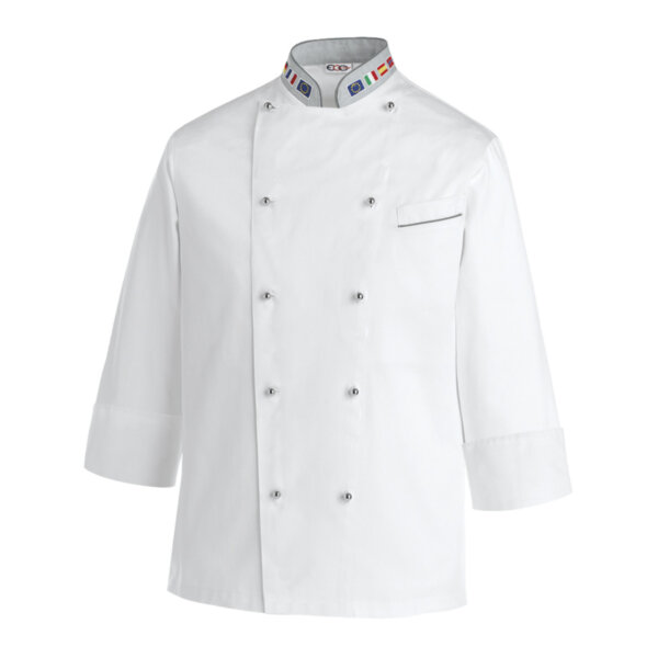 Το Unisex Σακάκι Μάγειρα Flags της EGOCHEF είναι με μακρύ μανίκι και σύνθεση 100% Βαμβάκι. Διαθέτει μικρή τσέπη στο αριστερό μανίκι για στυλό ή θερμόμετρο και μία μεγαλύτερη στο στήθος. Βάρος, 130 gsm.